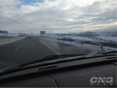 Bis Bratislava (Nord) ging mir dann natürlich das Gas aus und ich fuhr auf Benzin weiter. Zwischendurch habe ich noch über eine Stunde im Sitzen bis zum Morgengrauen schlafen können. Die nächste CNG-Tankstelle im slowakischen Liptowsky Mikulas hatte leider einen undichten Füllstutzen und ich brach daher den Tankvorgang bei ca. 15 kg ab.